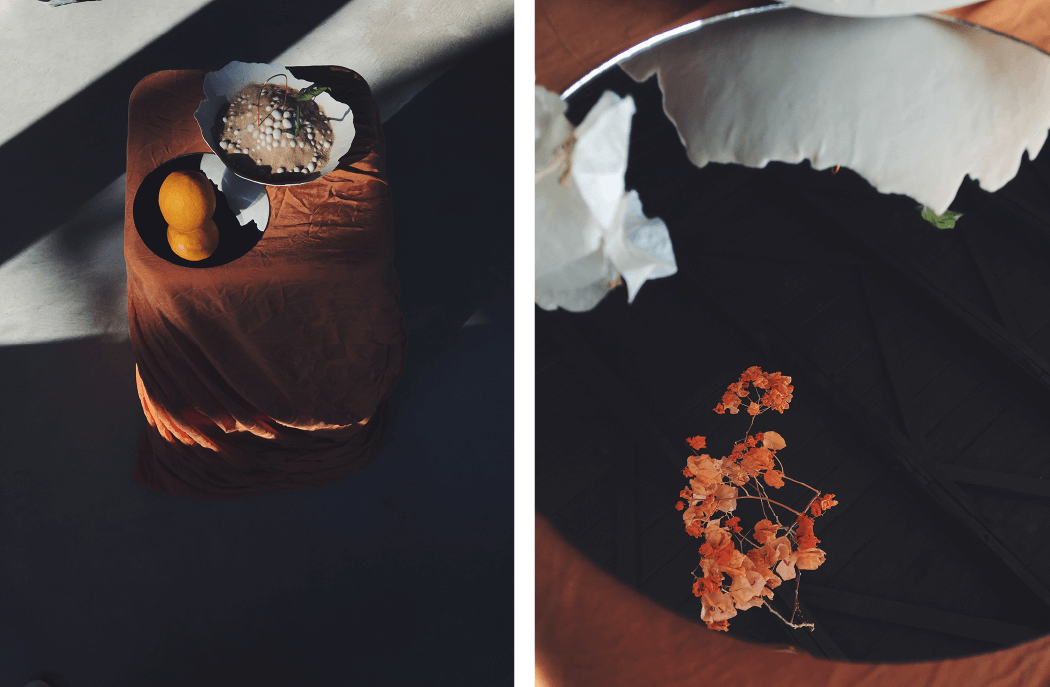 Part of an ongoing series called “new earth,” which Trock describes as “a physical representation of this potent period of time" where "we now begin to ground heaven on Earth,” the work featured plant matter and fresh fruit, delicate porcelain, and flowing textiles. While previous expressions in this series depicted the early phases of awakening (ie: breakdown, becoming empty for a time, and creating the correct vibrational conditions to allow divine intelligence to flow through), Trock explains that this incarnation of the series illustrated our collective movement into the embodiment phase of the ascension process – a phase that she believes we can currently inhabit.