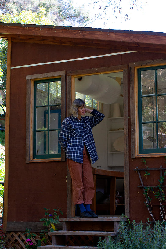 It makes sense that she cites Georgia O’Keeffe’s Ghost Ranch isolation as an inspiration. Miles' practice is articulated in a small pine studio with a cantilevered roof next to her clapboard cabin.