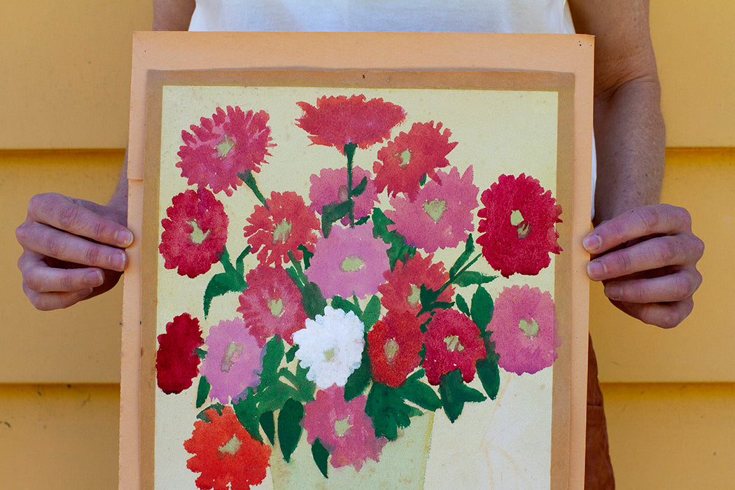 Miles’ family inherited more than just the land from her grandmother, Rosemary Carton. The prolific painter also passed down her affinity for flowers and a creative process informed by the surrounding landscape. “She left painting behind when she had kids to focus on ranch work and raise a family, but I was always around her paintings growing up,” Miles says. “When I started painting, I was even more drawn to her work, thinking about her and how that’s repeating itself with me.”